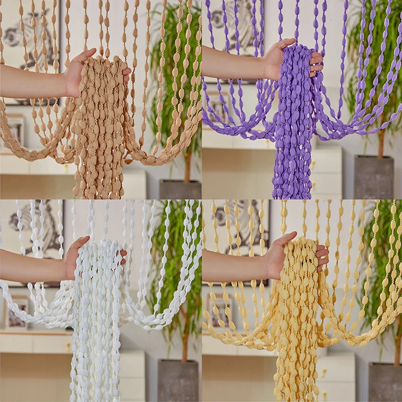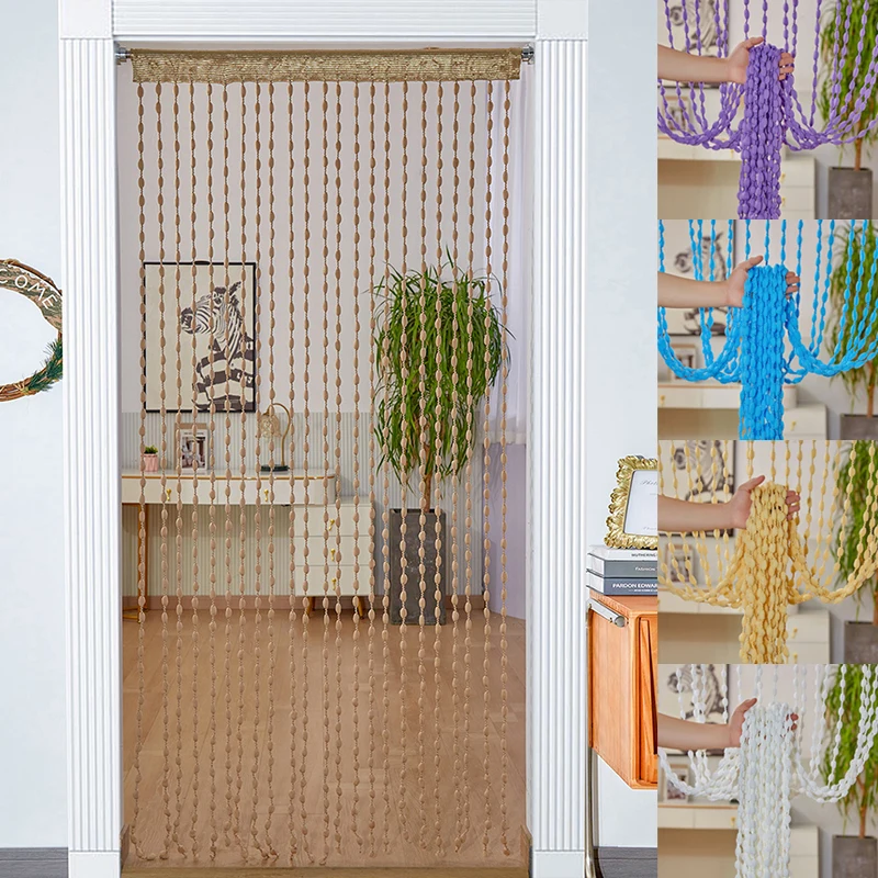 The linear curtains are hung with rods and the density can be adjusted according to your personal preference. If you prefer a more dense style, please purchase 2 or more. The material of the string curtain is polyester fiber. After you unpack it, there will be an odor of polyester fiber. If you mind this odor, please keep the room ventilated during the initial use. After hanging the product, the odor of the product will diminish with time of use.