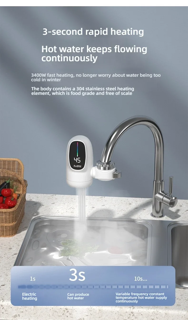 3000W Fast Heating Digital Display Instant Water Heater Tankless Heaters Kitchen Electric Hot Water Tap Bathroom Heating Faucet