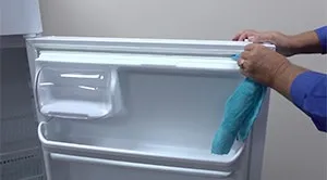 Cleaning the track ensures that the new gasket fits easily in the track and seals the door properly.