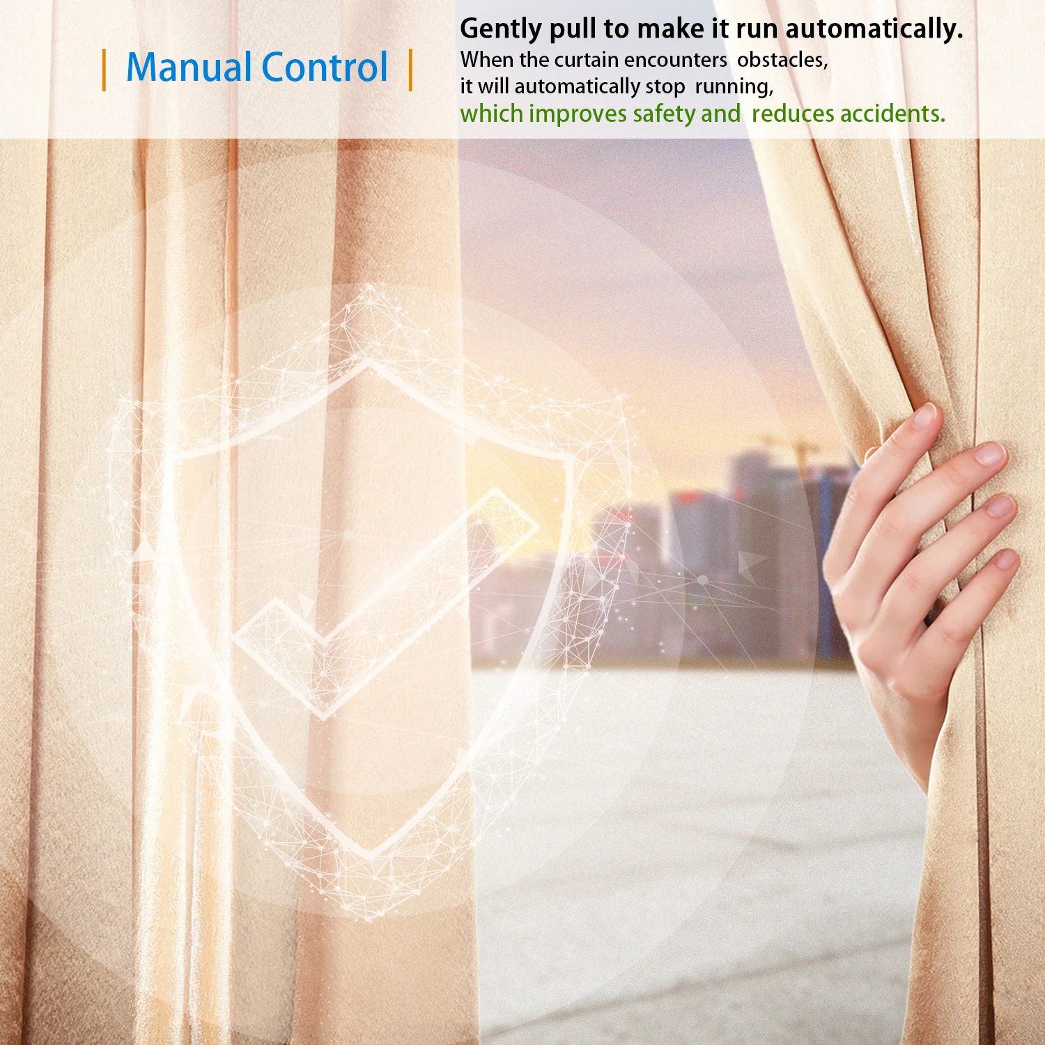 This automatic curtain control system can be operated manually too (in case power shut off)
