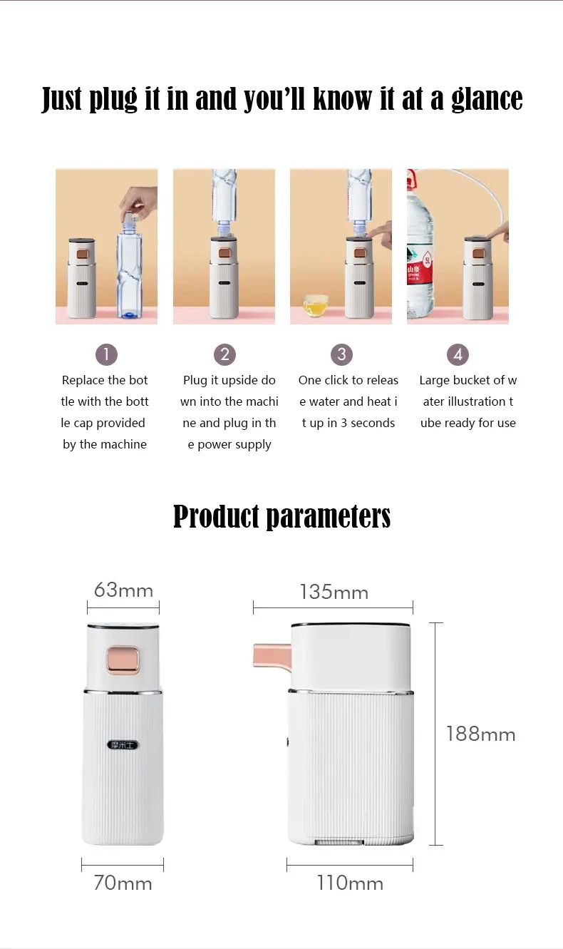 3s Instant Hot Water Dispenser, Baby Bottle Formula Dispenser, Mineral/Bottled Water Dispenser, Water Warmer for Travel, Hotel