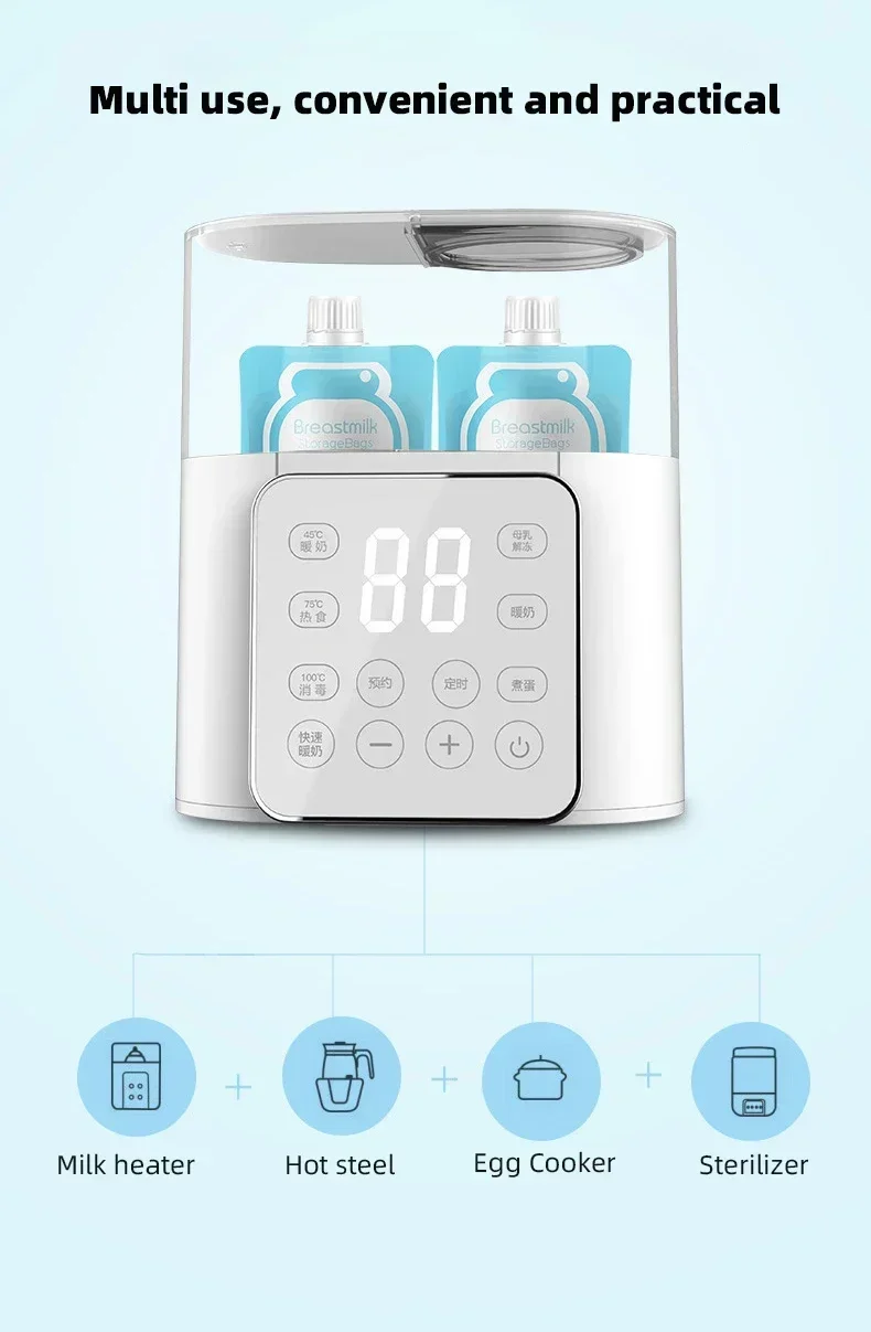 1. Warm milk enters the fast era, solving the problem of warm milk in 5 minutes. Quick hot milk | Steam disinfection | Anti dry burning function preheating function