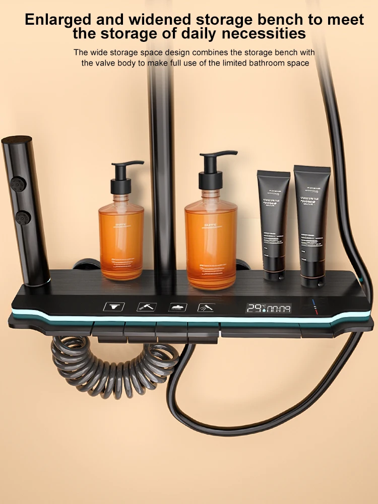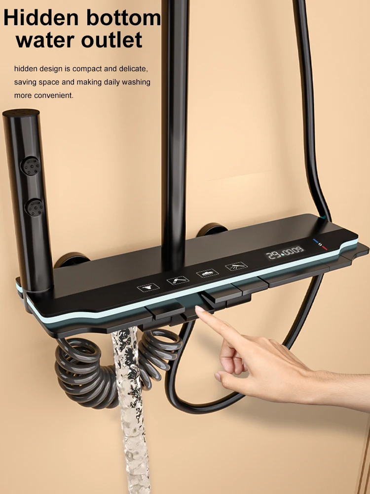 Bathroom Shower Set Digital Display Showers Hot Cold Wall-Mounted Rainfall Bathtub Showers Faucet Set