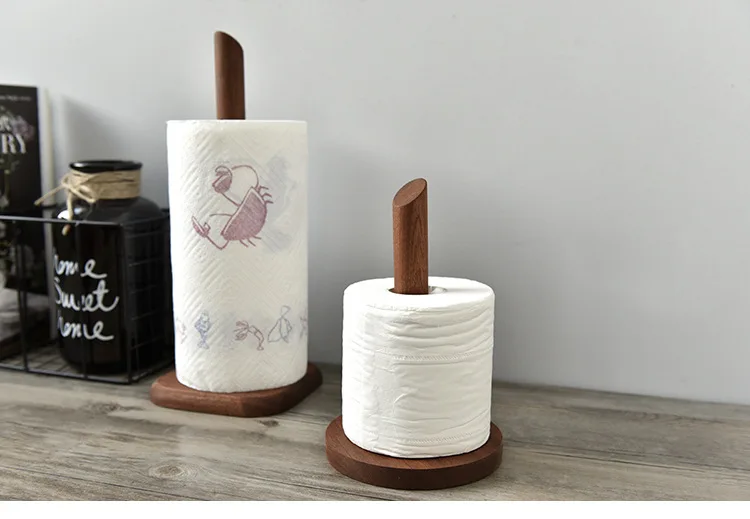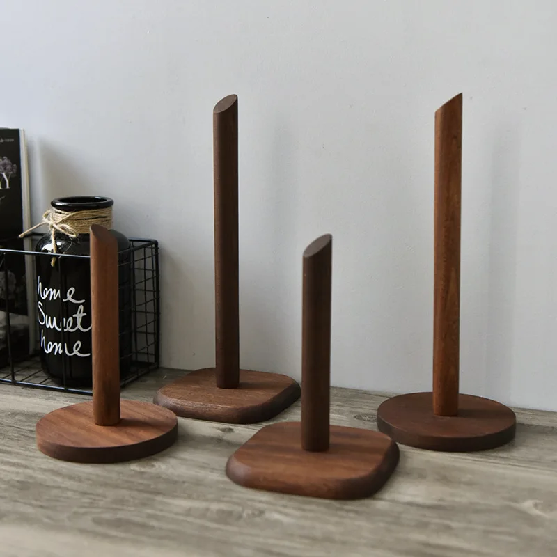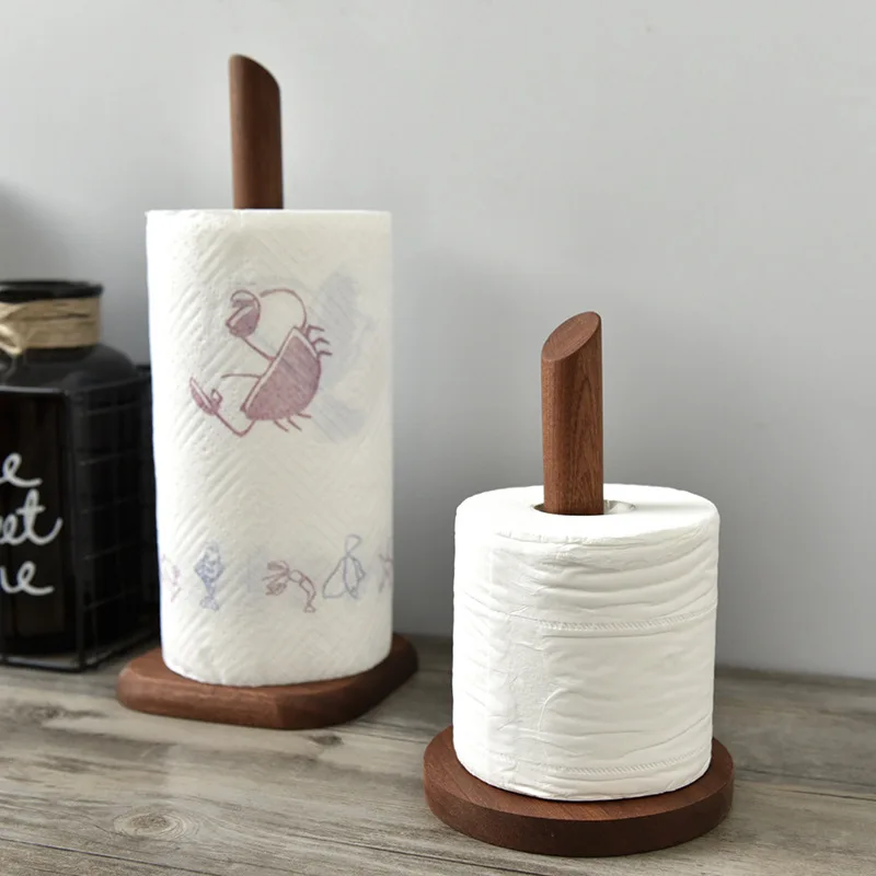 Creative Walnut Tissue Storage Rack Kitchen Vertical Roll Paper Holder Plastic Wrap Shelf Household Storage Ornament Decoration
