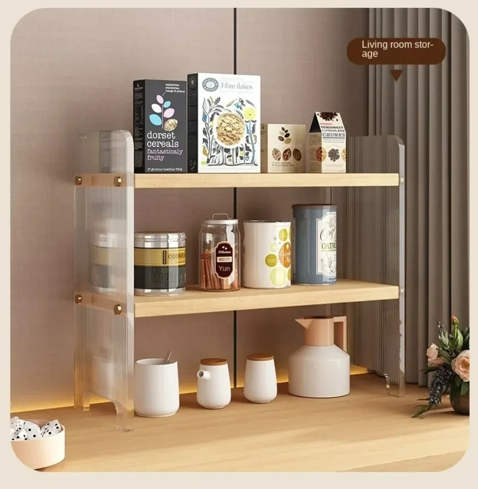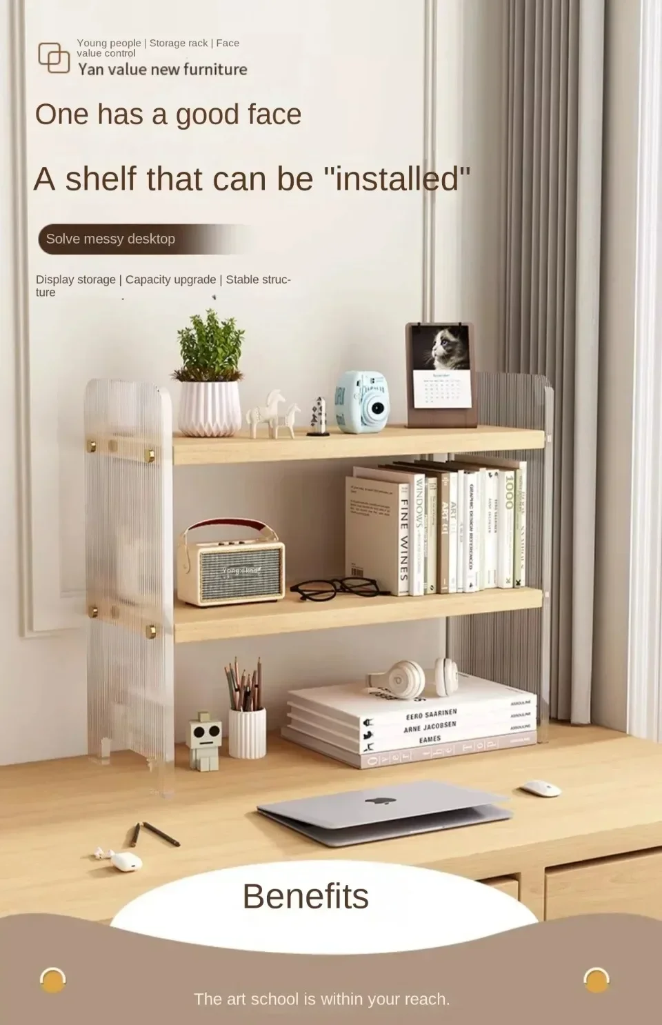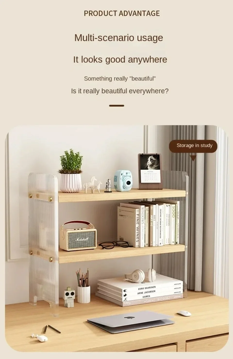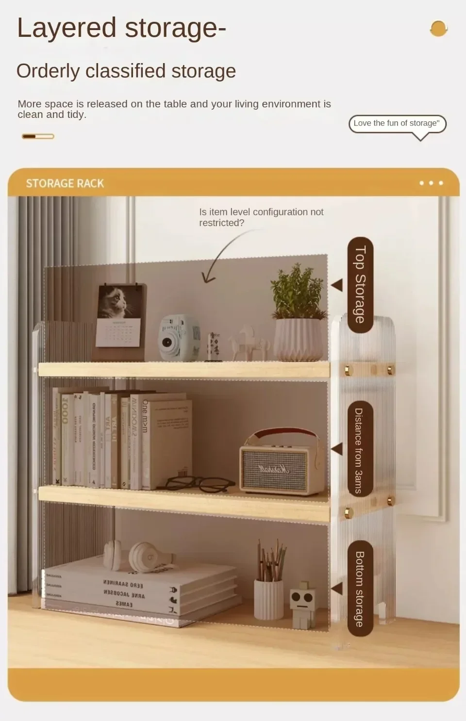 Project Description: Desktop storage rack, acrylic desk bookshelf, office workstation multi-layer storage rack, student dormitory sorting rack.