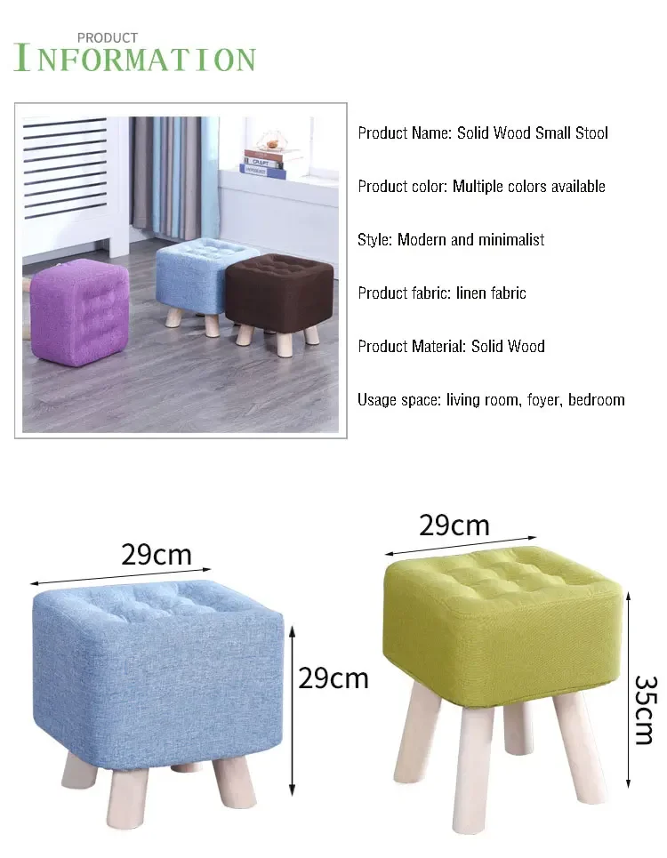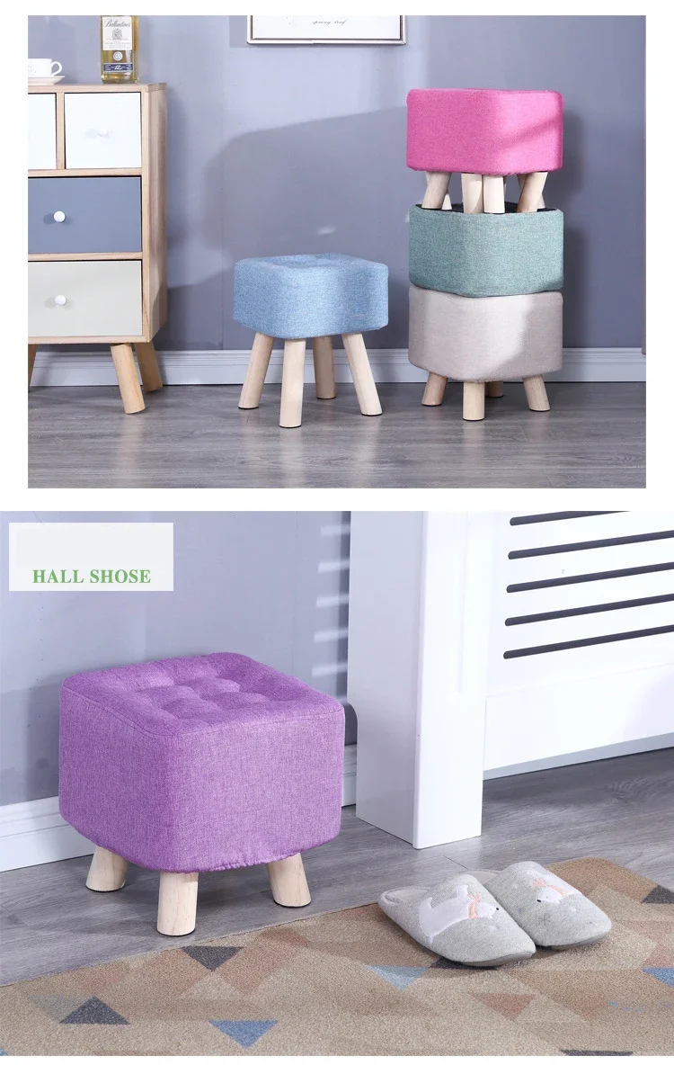Elastic Foot Rest Stool Solid Wood Square Ottoman for Changing Shoes Small Sofa Bench Hallway Furniture Home Decoration - Bakesbyemily.com