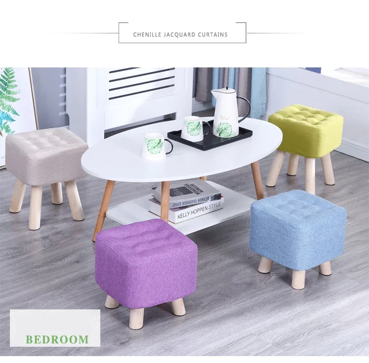 Elastic Foot Rest Stool Solid Wood Square Ottoman for Changing Shoes Small Sofa Bench Hallway Furniture Home Decoration