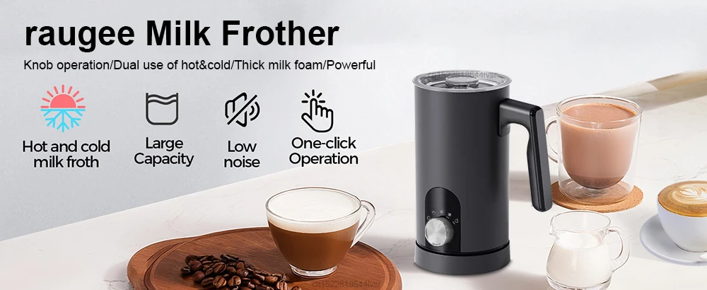 【Whisper-Quiet】Our raugee milk frother operates at a whisper-quiet level, so you can prepare your coffee creations peacefully, even early in the morning.