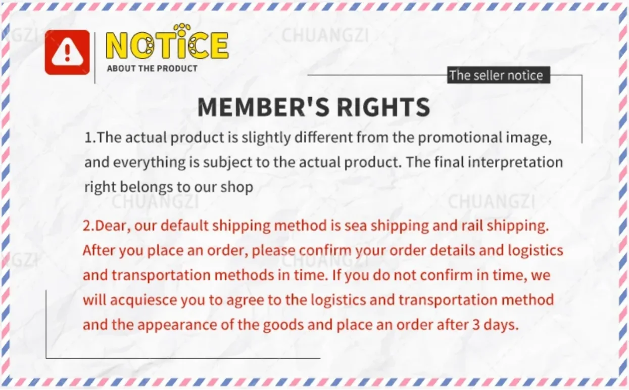Dear friend, thank you very much for ordering our products. Our default mode of transportation is sea or rail transportation. This kind of transportation is door-to-door and does not require customs declaration. The time limit is 45-70 days. You can also choose express. The aging is 15-30 days. Choosing express delivery requires you to pay additional costs, while express delivery requires you to handle customs declaration fees and customs clearance issues yourself. Of course, when you deal with customs clearance issues, we will assist you in customs clearance and provide you with the documents required for customs clearance. Note: Our service does not include handling customs declaration fees and customs clearance issues incurred by express logistics. And during the transportation, we do not accept any form of rejection or dispute. If you have any questions after receiving the goods, please contact the seller as soon as possible. We will serve you wholeheartedly, but do not accept malicious submission of disputes. Once submitted, we will automatically give up after-sales service by default.Note: Our service does not include handling customs declaration fees and customs clearance issues incurred by express logistics. And during the transportation, we do not accept any form of rejection or dispute. If you have any questions after receiving the goods, please contact the seller as soon as possible. We will serve you wholeheartedly, but do not accept malicious submission of disputes. Once submitted, we will automatically give up after-sales service by default.