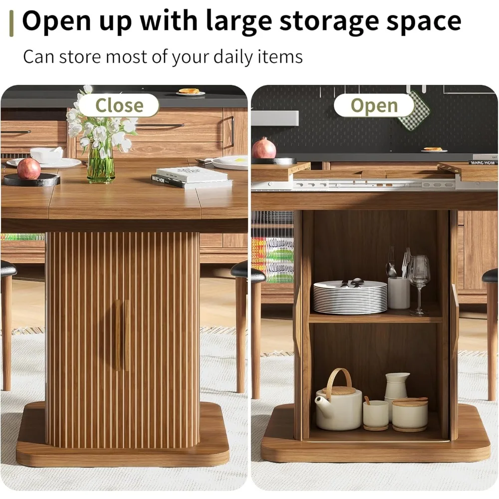 Extendable Round Dining Table for 4-6-8, 59 Inch Dining Room Kitchen Table with Storage, Fluted Wood Slide Door, Modern Oval