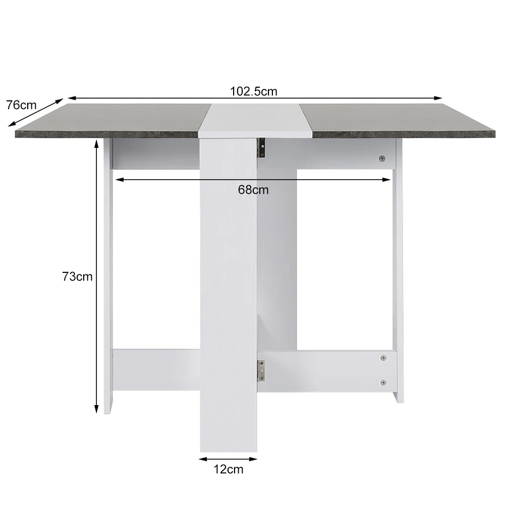 Folding Kitchen Table/Living Room Table 102.5 x 76 x 73 cm Dining Table for 4 to 6 people - White/Concrete