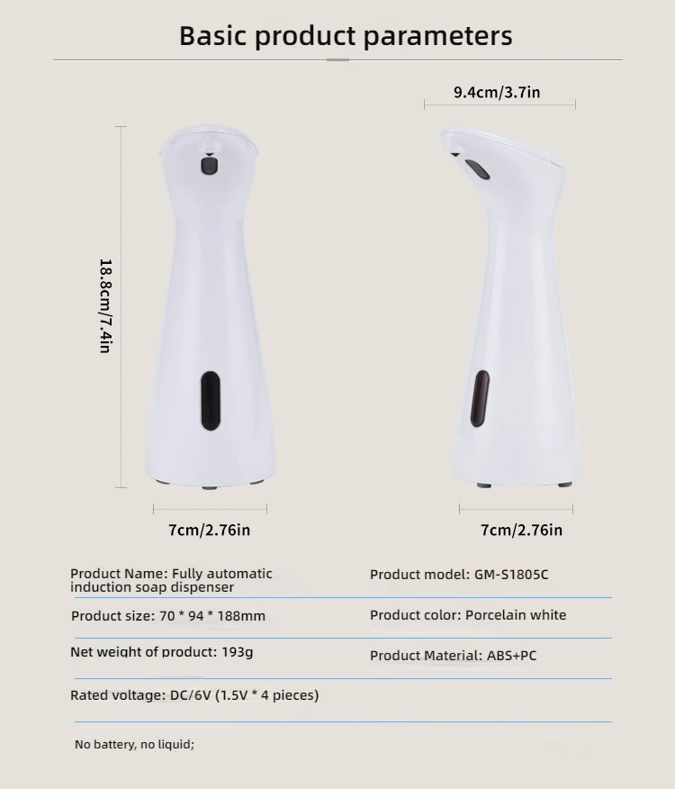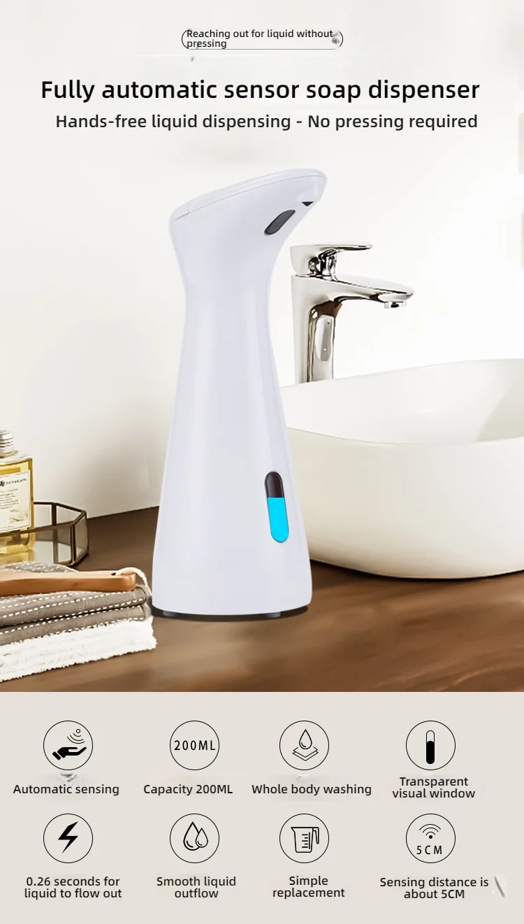 Fully Automatic Sensor Soap Dispenser 200ML High Quality Dispenser Waterproof for Kitchen Bathroom Washroom Handpiece