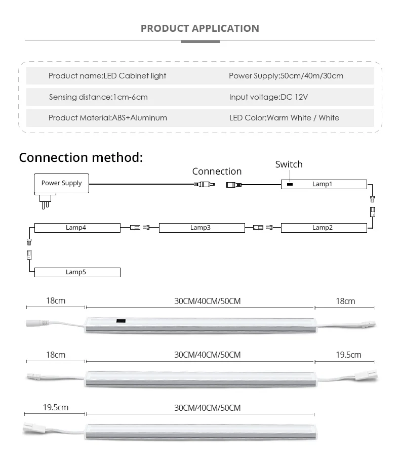 Kitchen Under Cabinet Sensor LED Lighting Kit Linkable LED Bar Light Hand Sweep Dimmable Switch Counter Shelf Workbench Closet