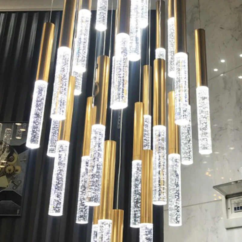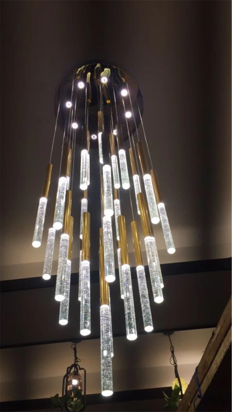 Modern chandelier lighting for staircase large long crystal lamps hallway lobby gold chain chandeliers home decor light