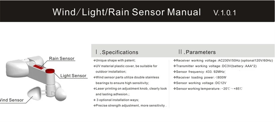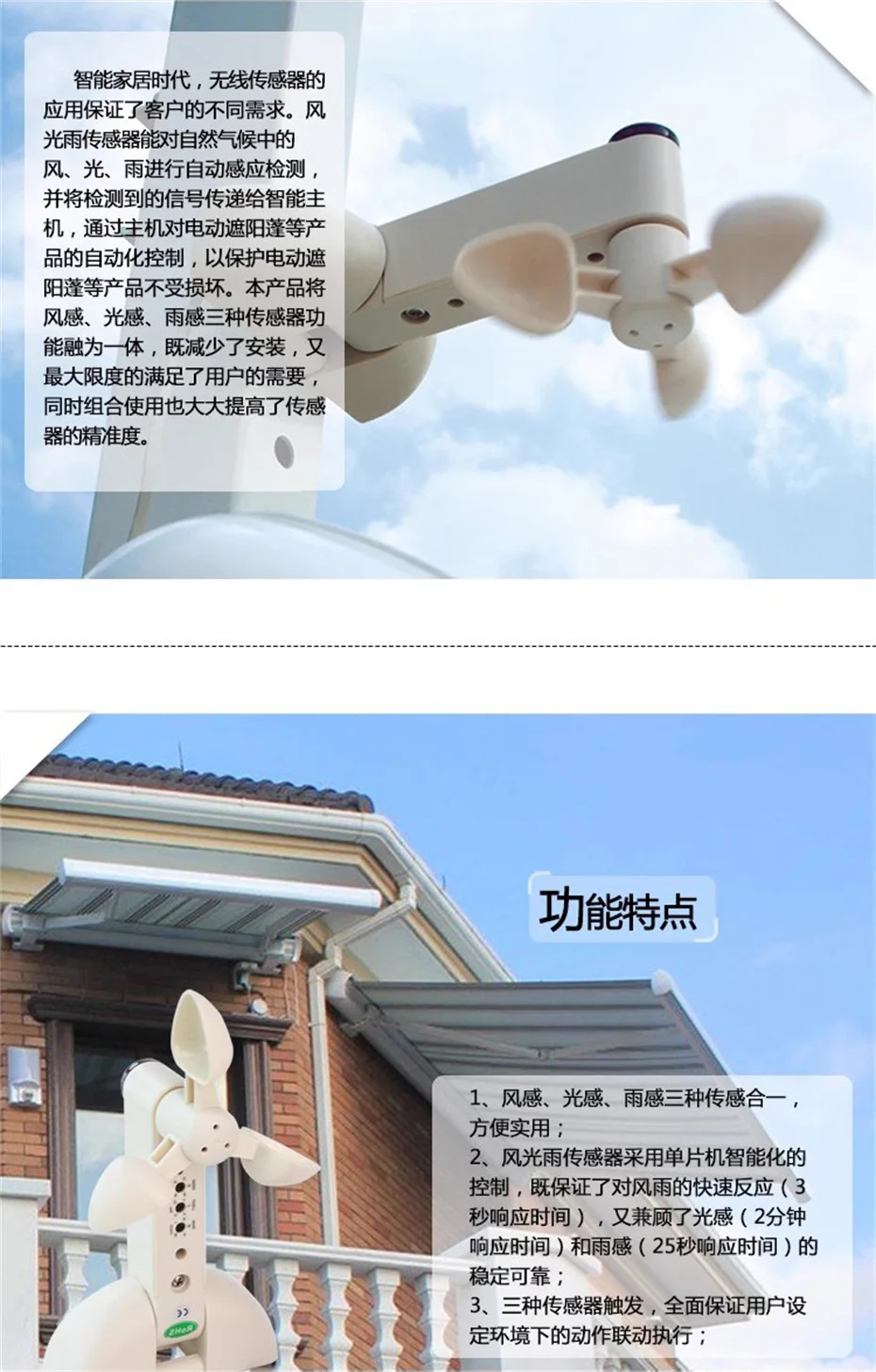 New Smart Wireless RF433 Wind Light Rain Sensor,only for Dooya RF433 Curtain Motor of Fixed Code with 3 wires,Open Close Window Automatically,no suppot Dooya Rolling Code Motor
