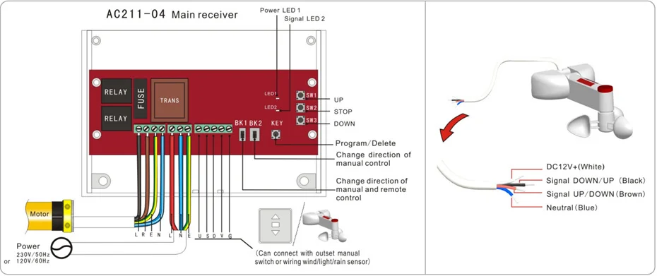 2. Before order,check and make sure your Dooya RF433 motor has 3 wires,this sensor can not work with 4 wire motor.