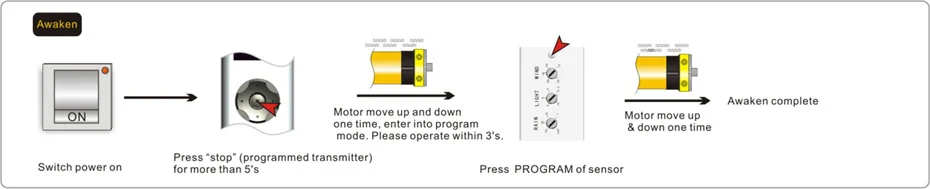 3. Before use, you need to make pair between this sensor and your RF433 Dooya motor with the help of Dooya Hand-held emitter/RF433 emitter wall switch like DC2700/DC1650....