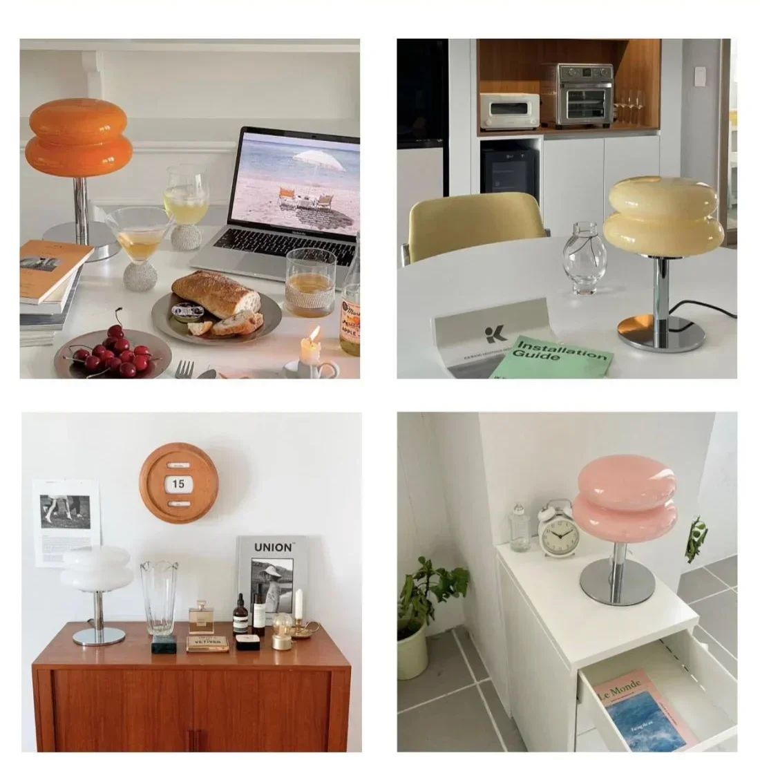 Nordic Bauhaus Macaron Glass LED Desk Lamp Dimming,Atmosphere Lamps Eye Protection Night Lighting Girl Bedroom Bedside Decor