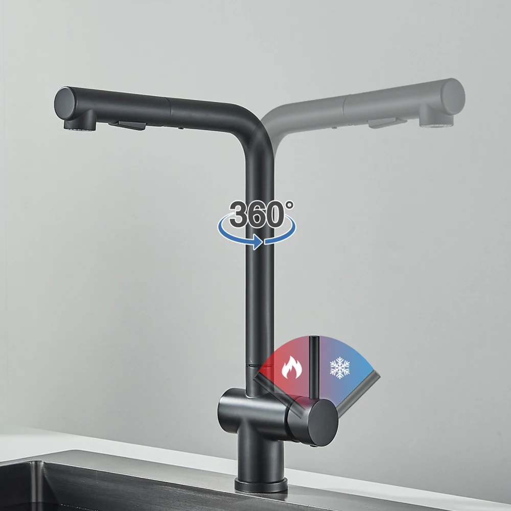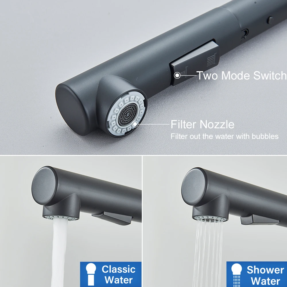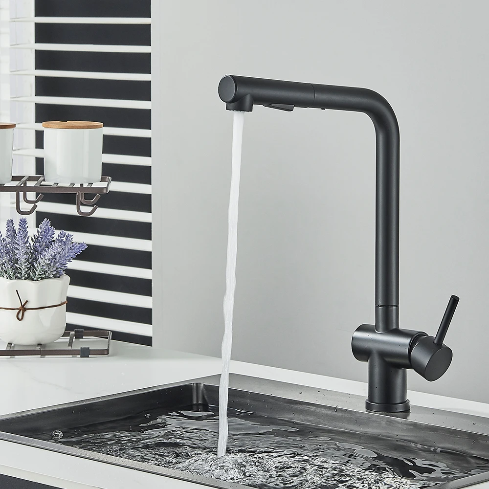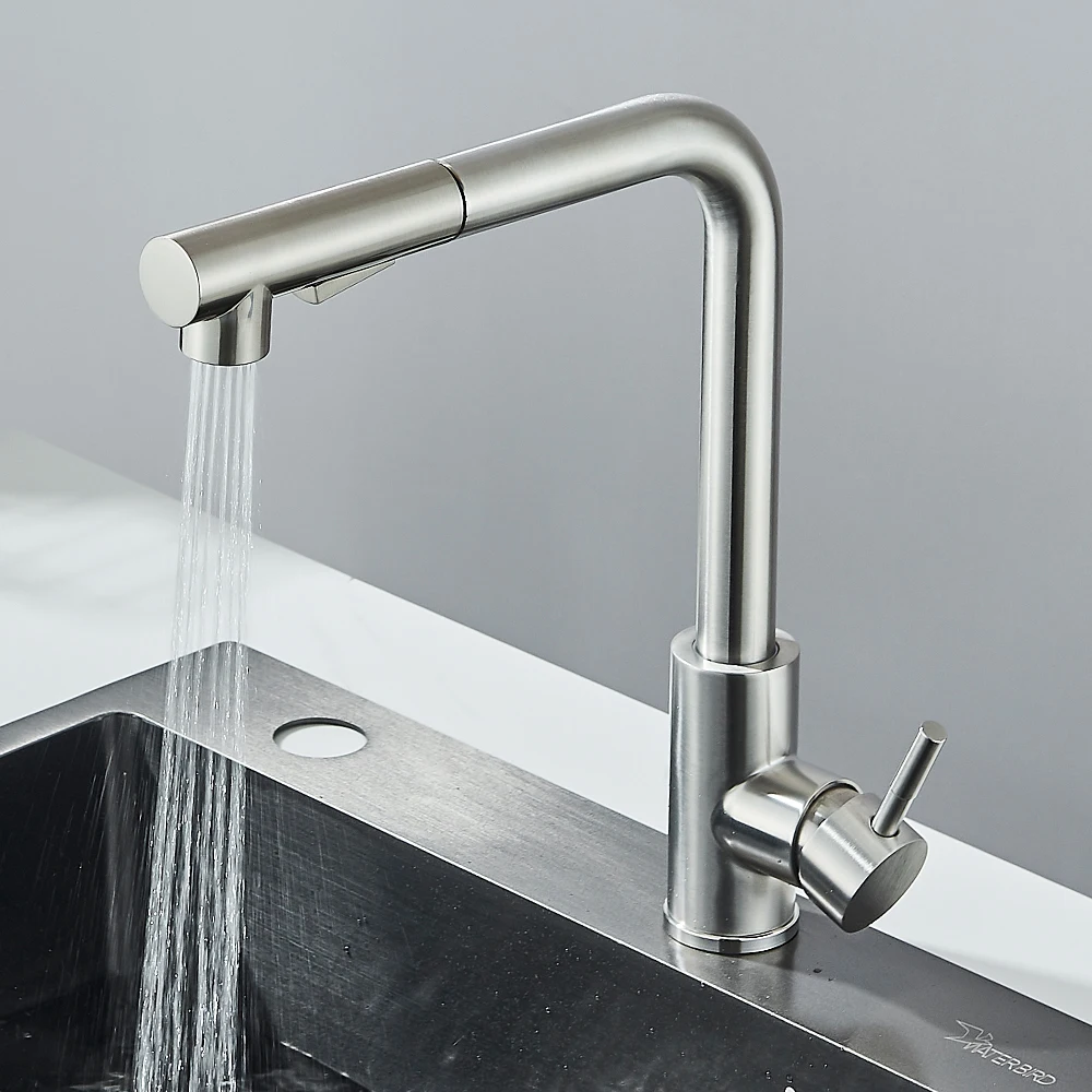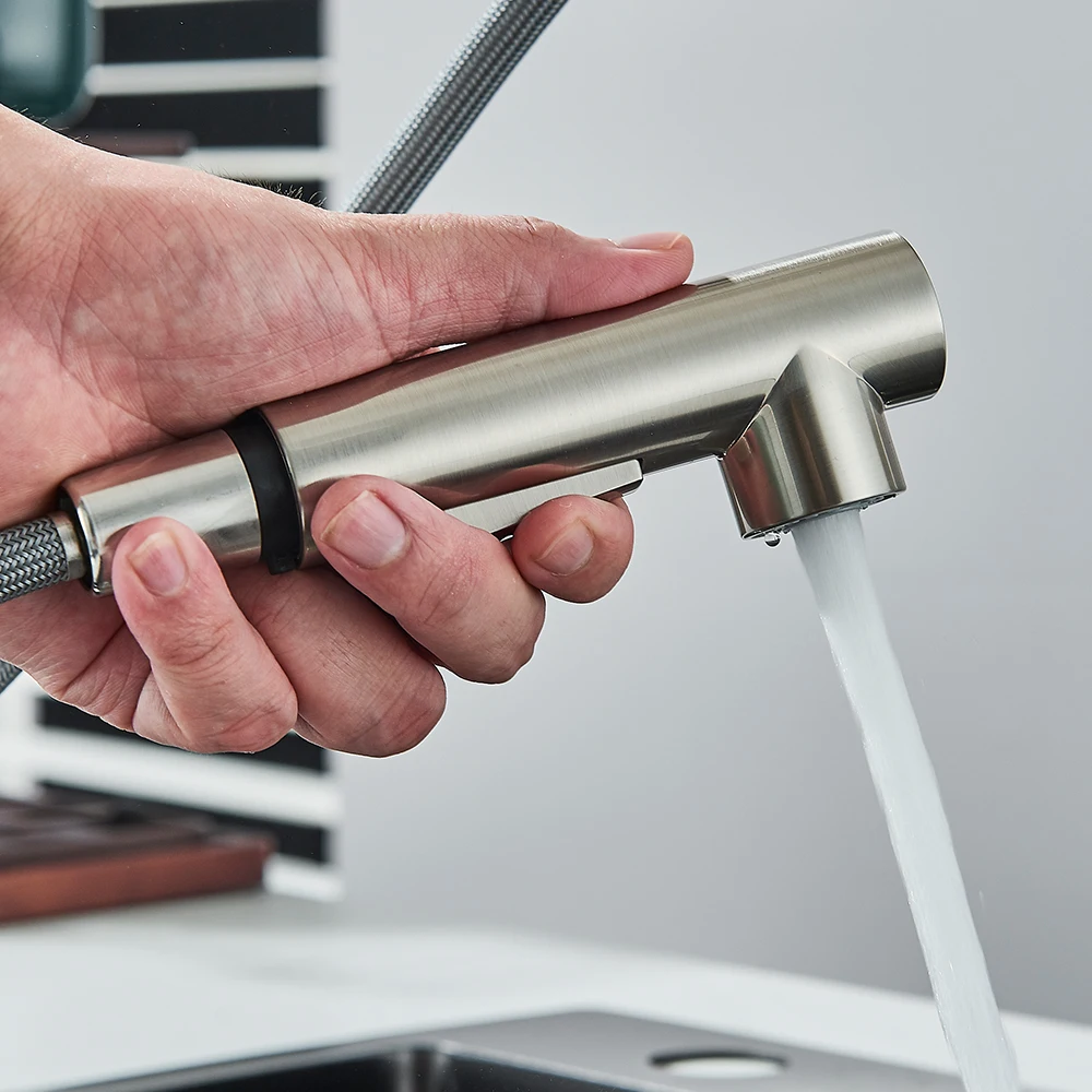 Black/Brushed Nickel Pull Out Kitchen Sink Faucet Deck Mounted Stream Sprayer Kitchen Mixer Tap Single Handle Bathroom Kitchen Hot Cold Tap