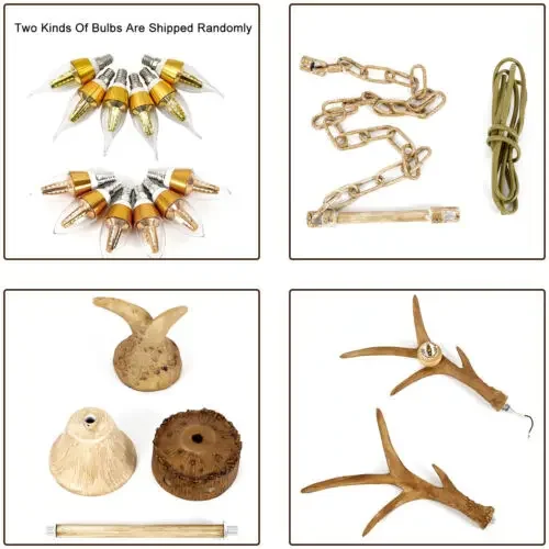 Retro Brown Antler Chandelier 6 Heads Deer Horn Ceiling Light Pendant Lamp