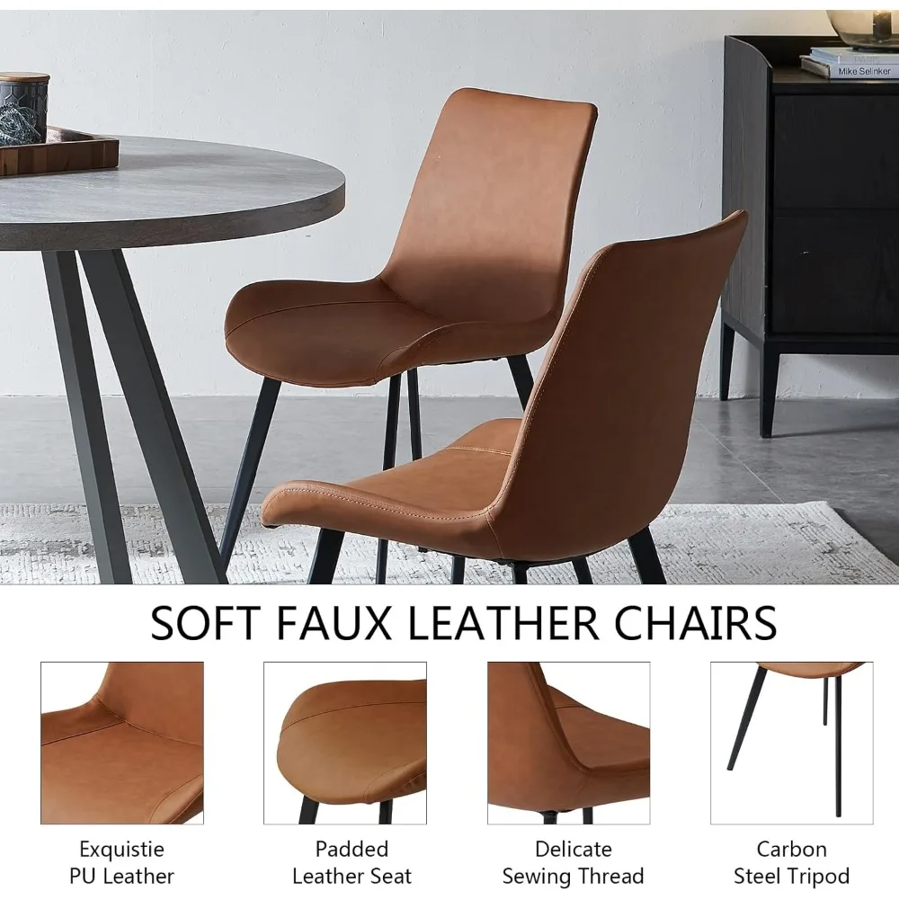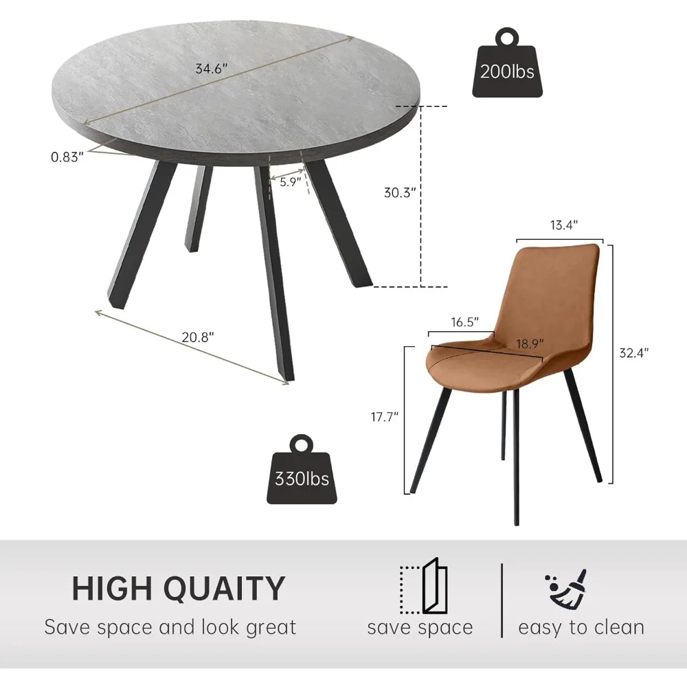 • Modern Round Table Set: This stylish round dining table set features a round table crafted from thick MDF material with a unique textured finish, complemented by 4 PU leather chairs with ergonomic curved backs and high-elastic sponge seats.