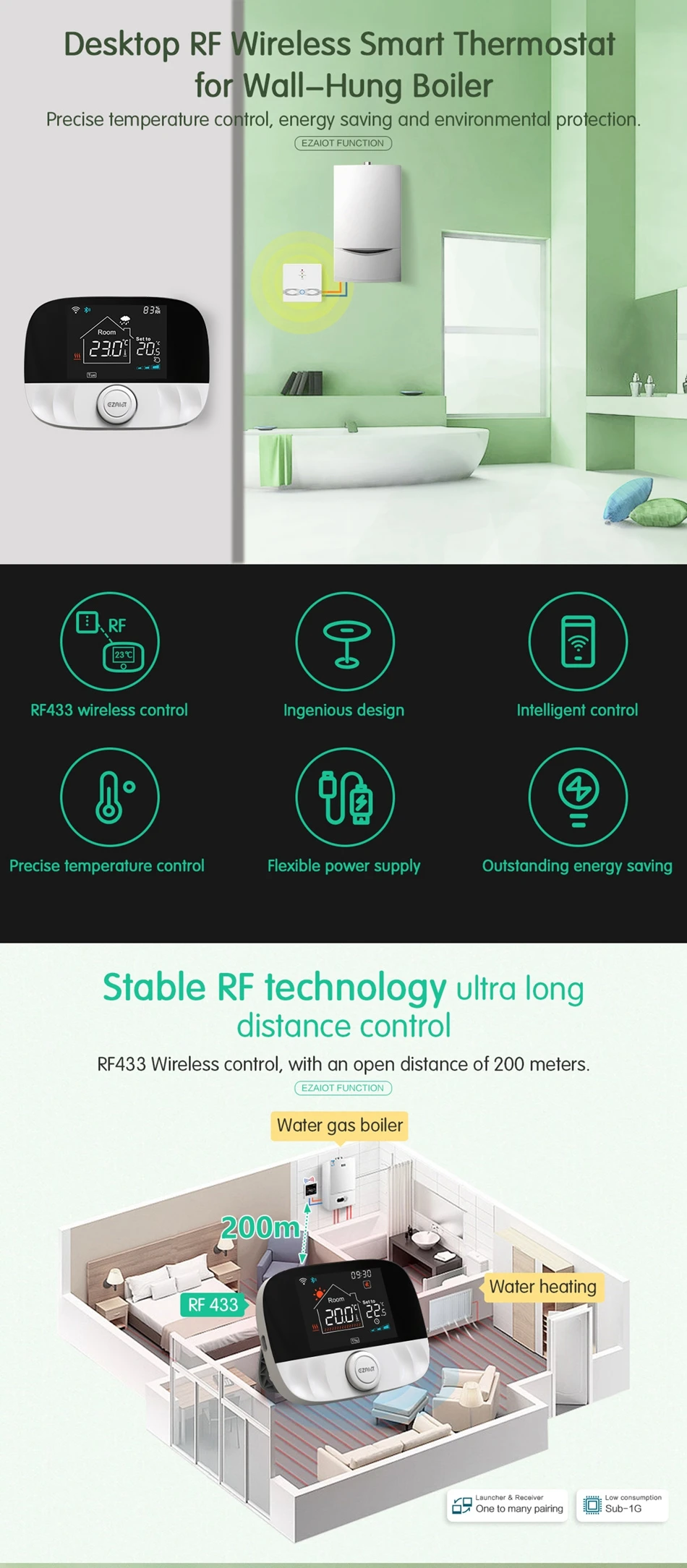 EZAIOT Wireless Smart Thermostat Kit (RF433 + Wi-Fi)