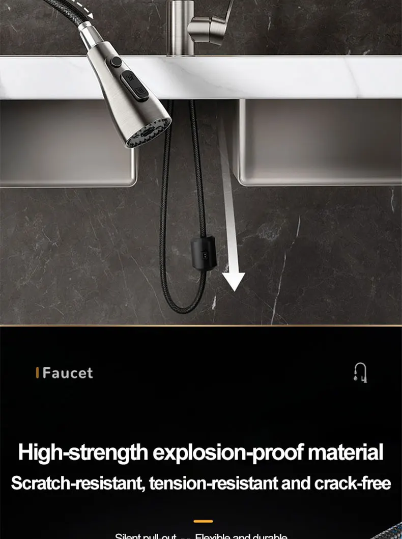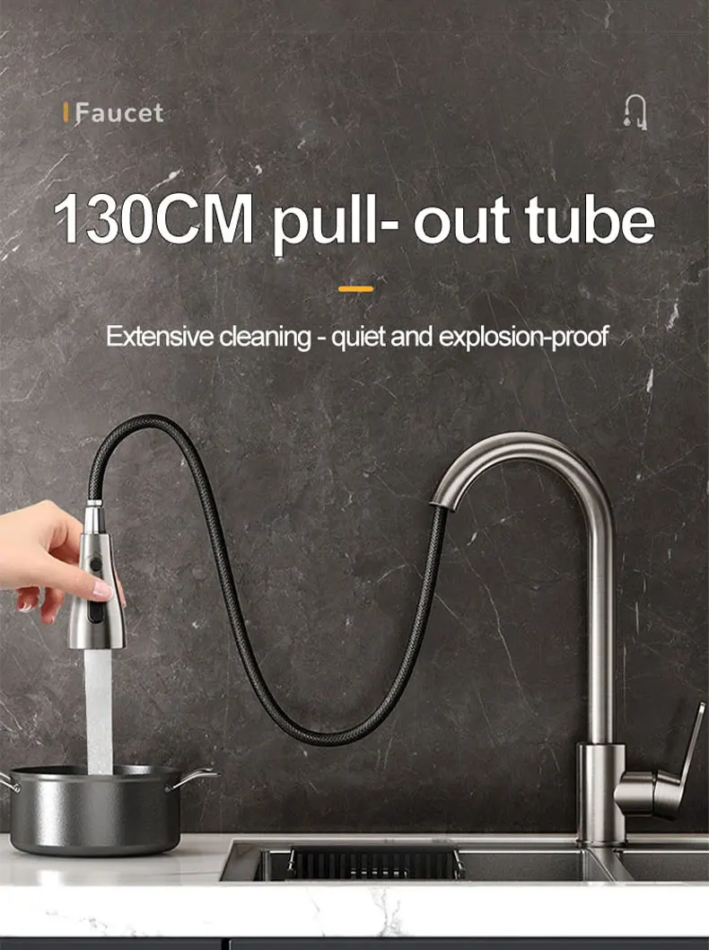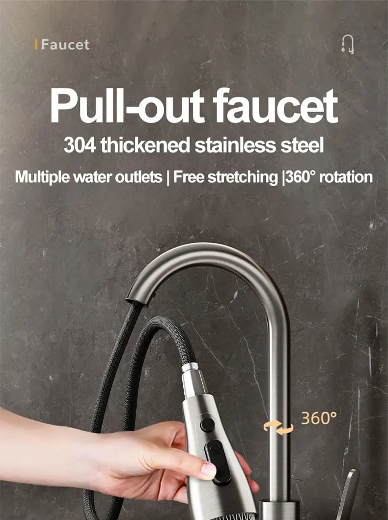 Stainless steel kitchen pull-out faucet, hot and cold household splash-proof sink, retractable sink, vegetable washing basin fau