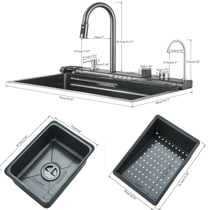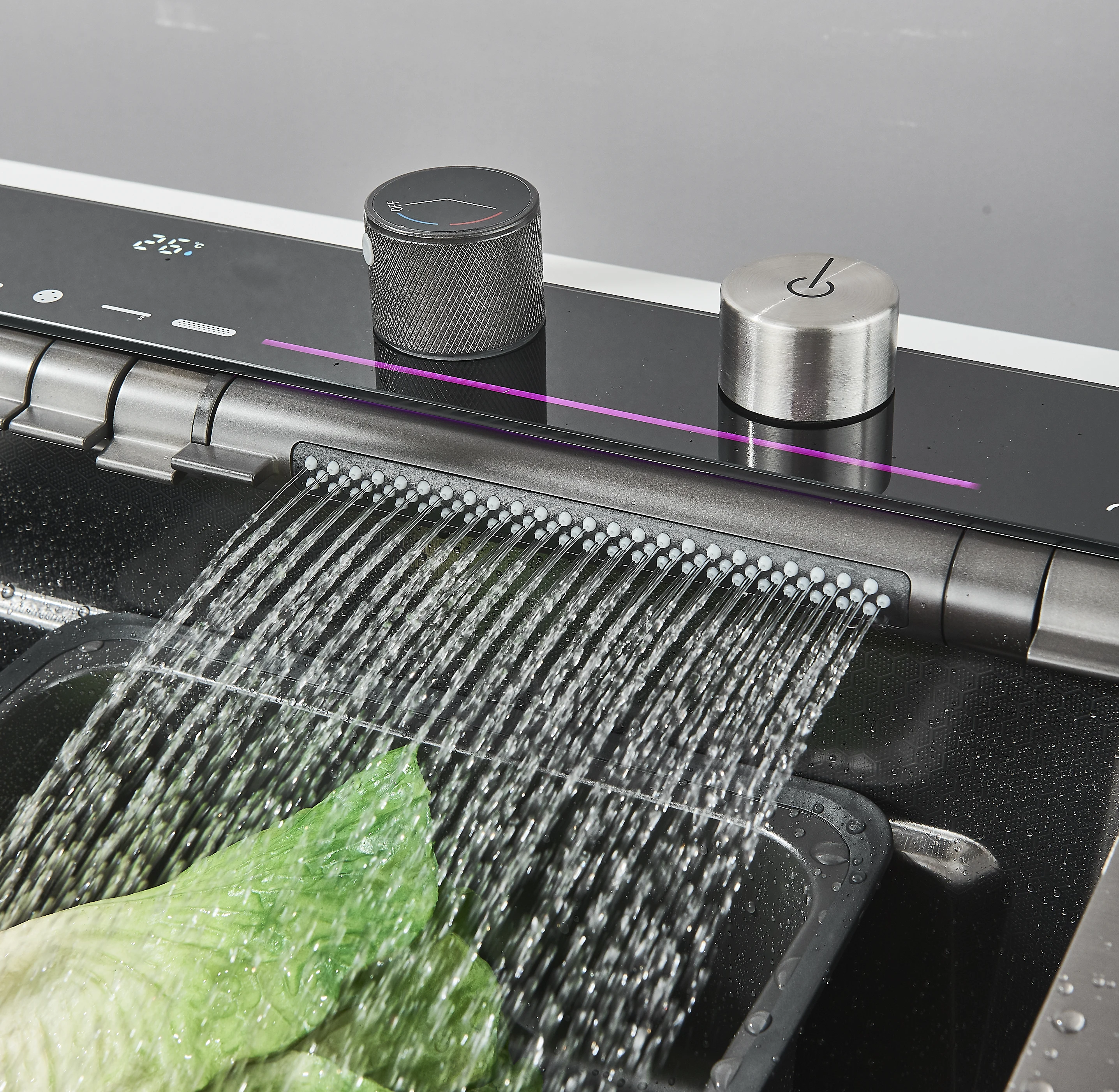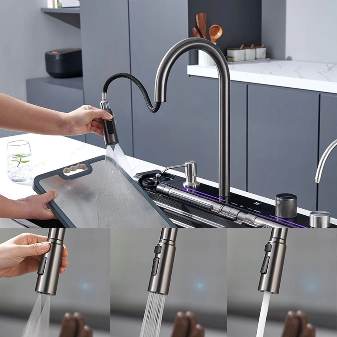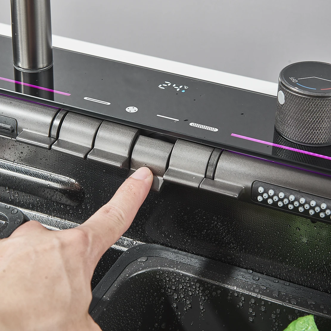 Stainless Steel Kitchen Waterfall Sink Digital Display Large Single Sink Dish Basin Sink Purification water Cup Washer Crane