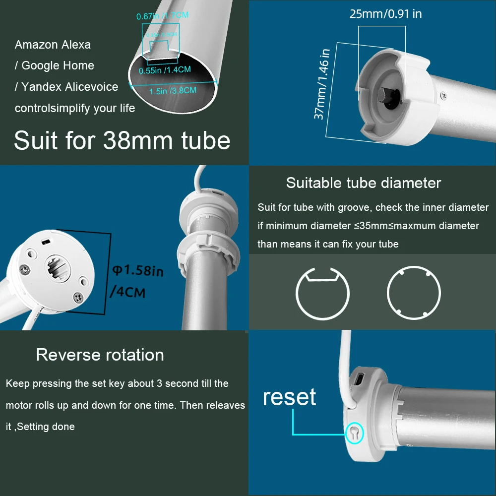 2.This wifi roller shade blinds motor is for 38mm tube.