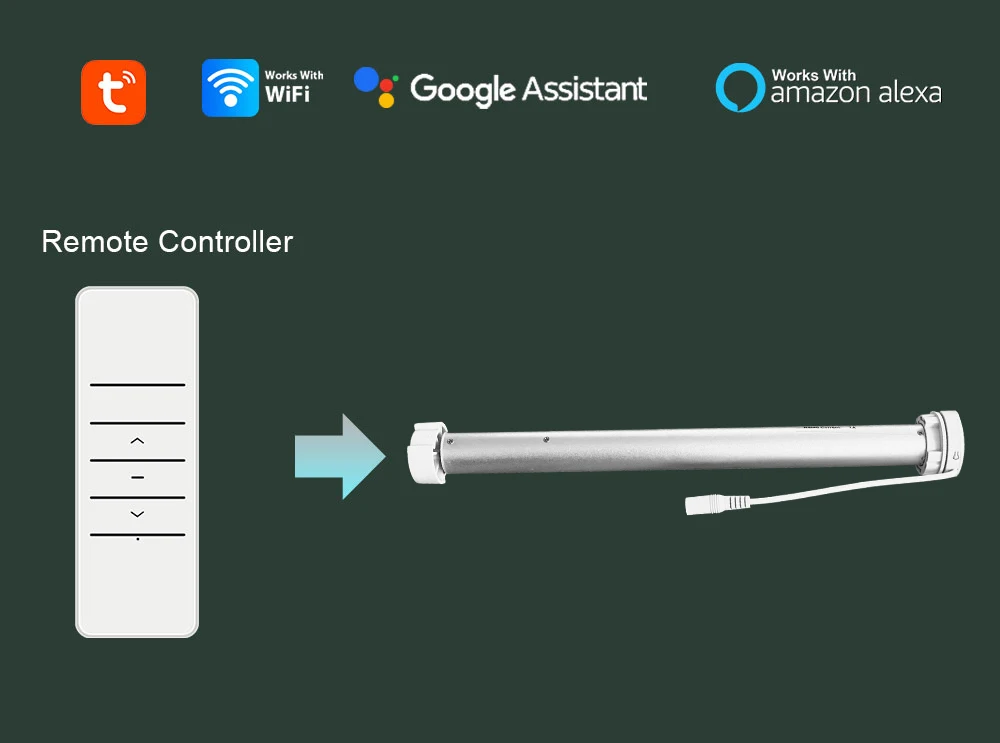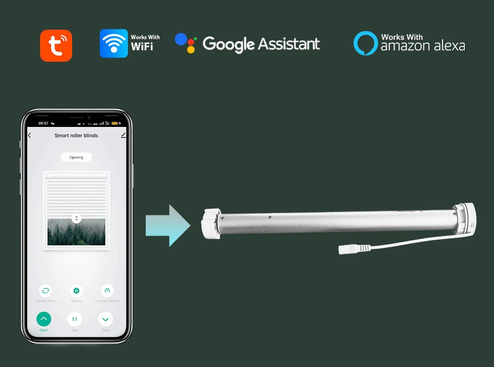 3. This WiFi roller shade motor allows you to remotely open/close your shade via the smartphone app, set timers for automatic operation, and supports voice control through “Alexa ”and “Google Home” assistants.