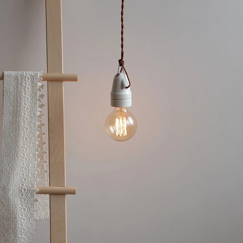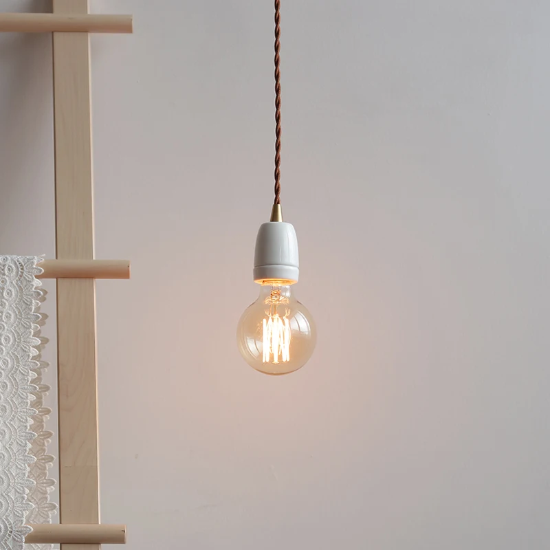 Vintage ceramic bedside pendant lamp Art single head dining room table pendant lamp Creative personality Mini pendant lamp