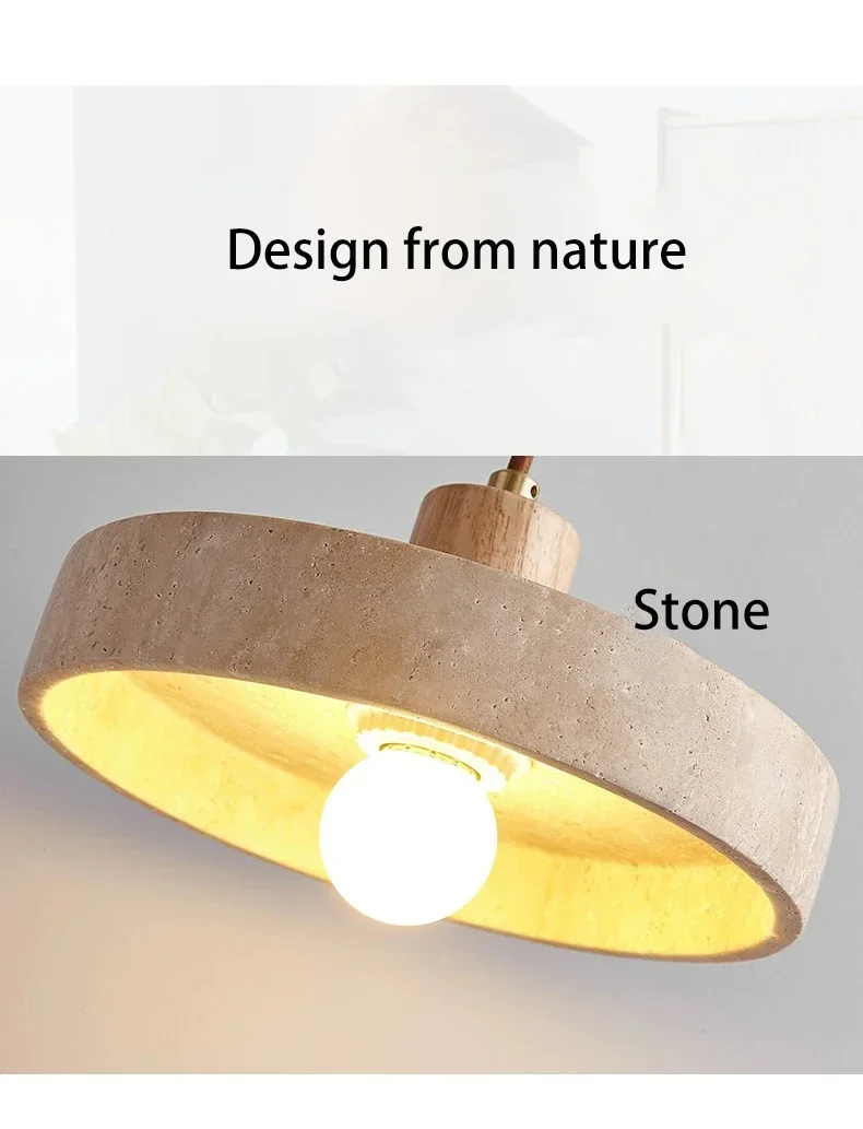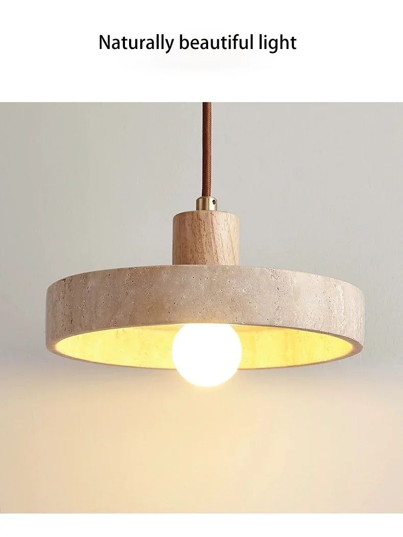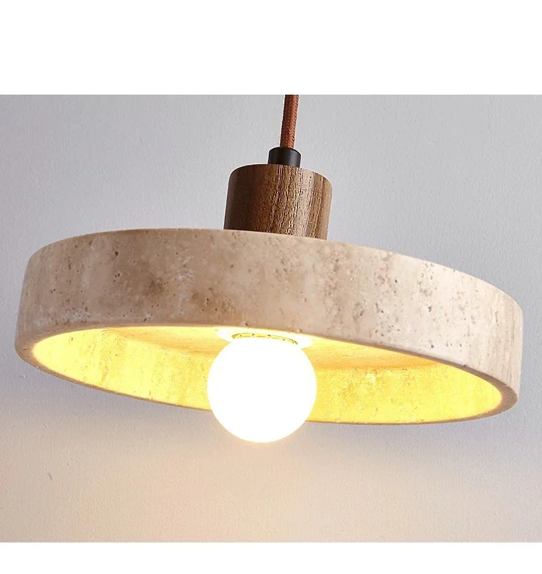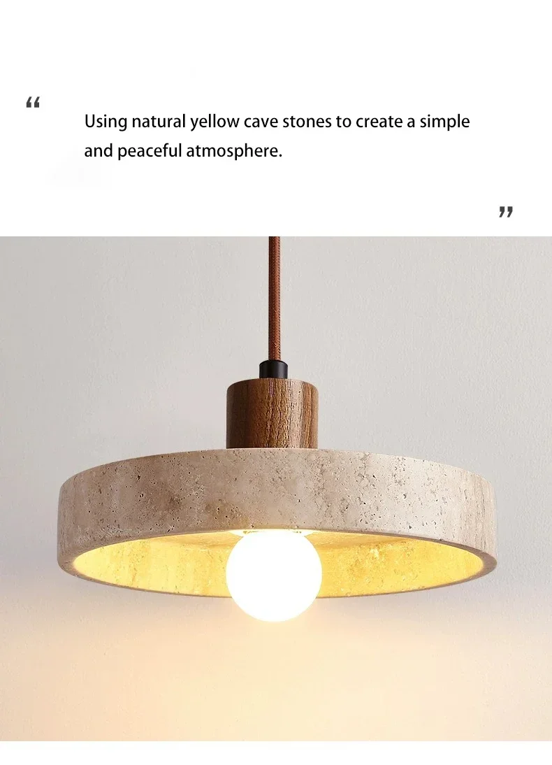 Wabi sabi Yellow Travertine Pendant Light Nordic Retro for Dining Table Bedside Flying Saucer Design LED Cream Style Lighting